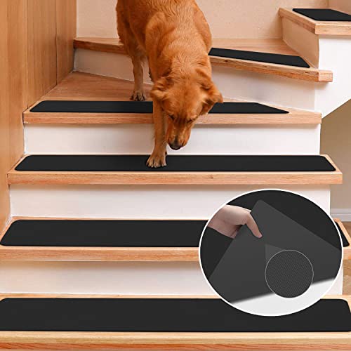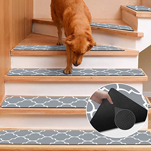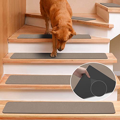 Rubber Carpet Stair Treads for Wooden Steps Non Slip, Reusable Stair Carpet Treads Stair Grips for Pet Dogs - Machine Washable Stair Pads Covers Inside, Set of 15, 8"X30"