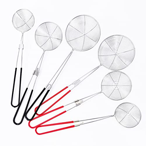Spider Strainer for kitchen, Chinese Hot Pot Strainer Spoon Colander Skimmer Spoon, 6Pcs Food Strainer Wire Strainer Ladle With Handle, Metal Stainless Steel Boba Pearl Scoop